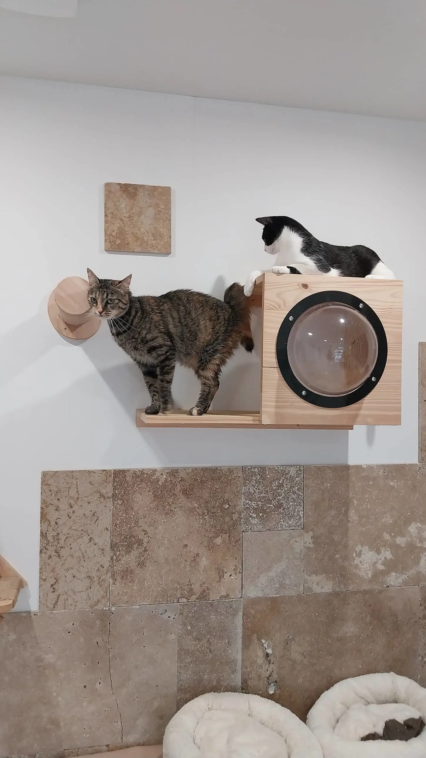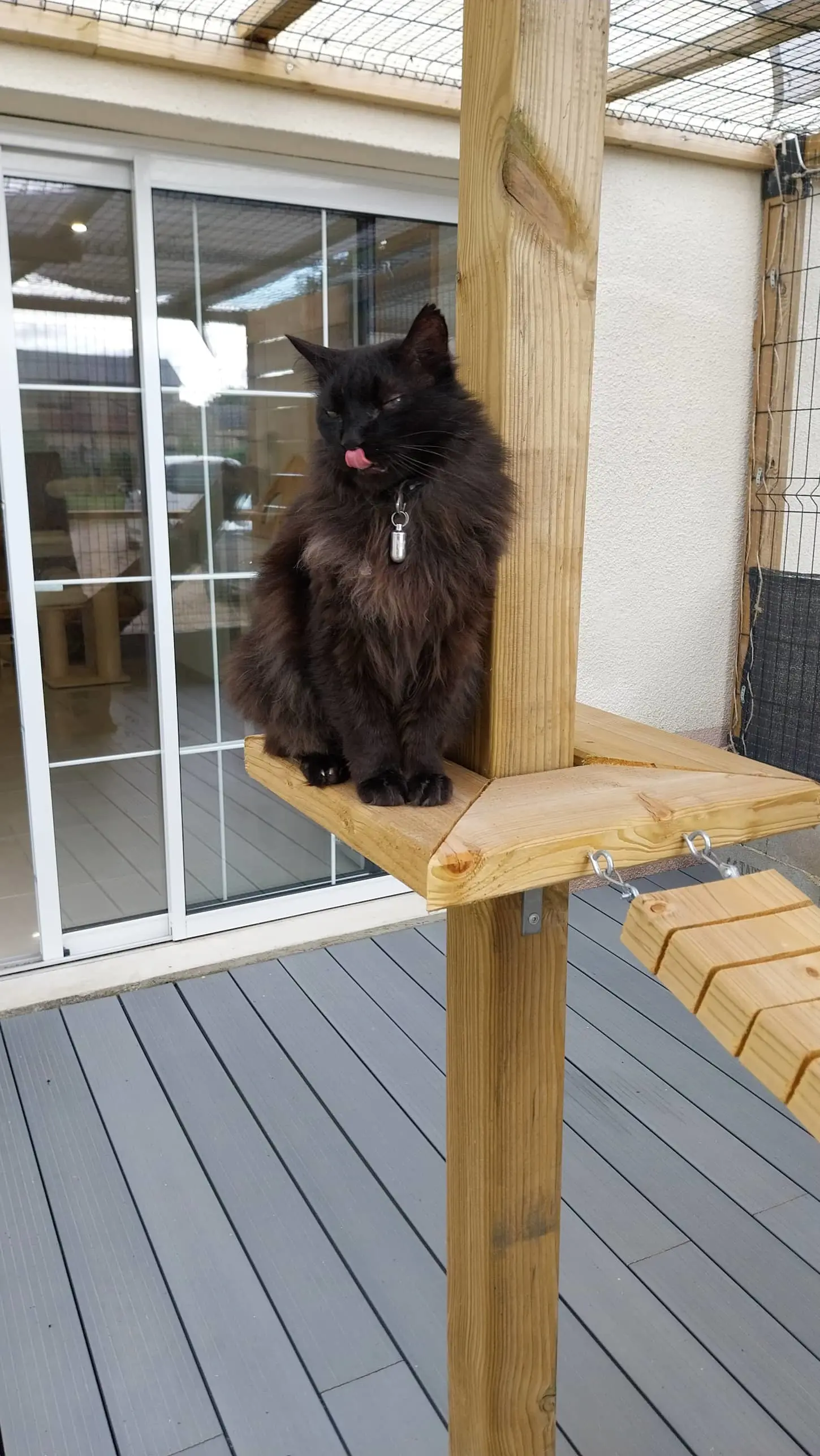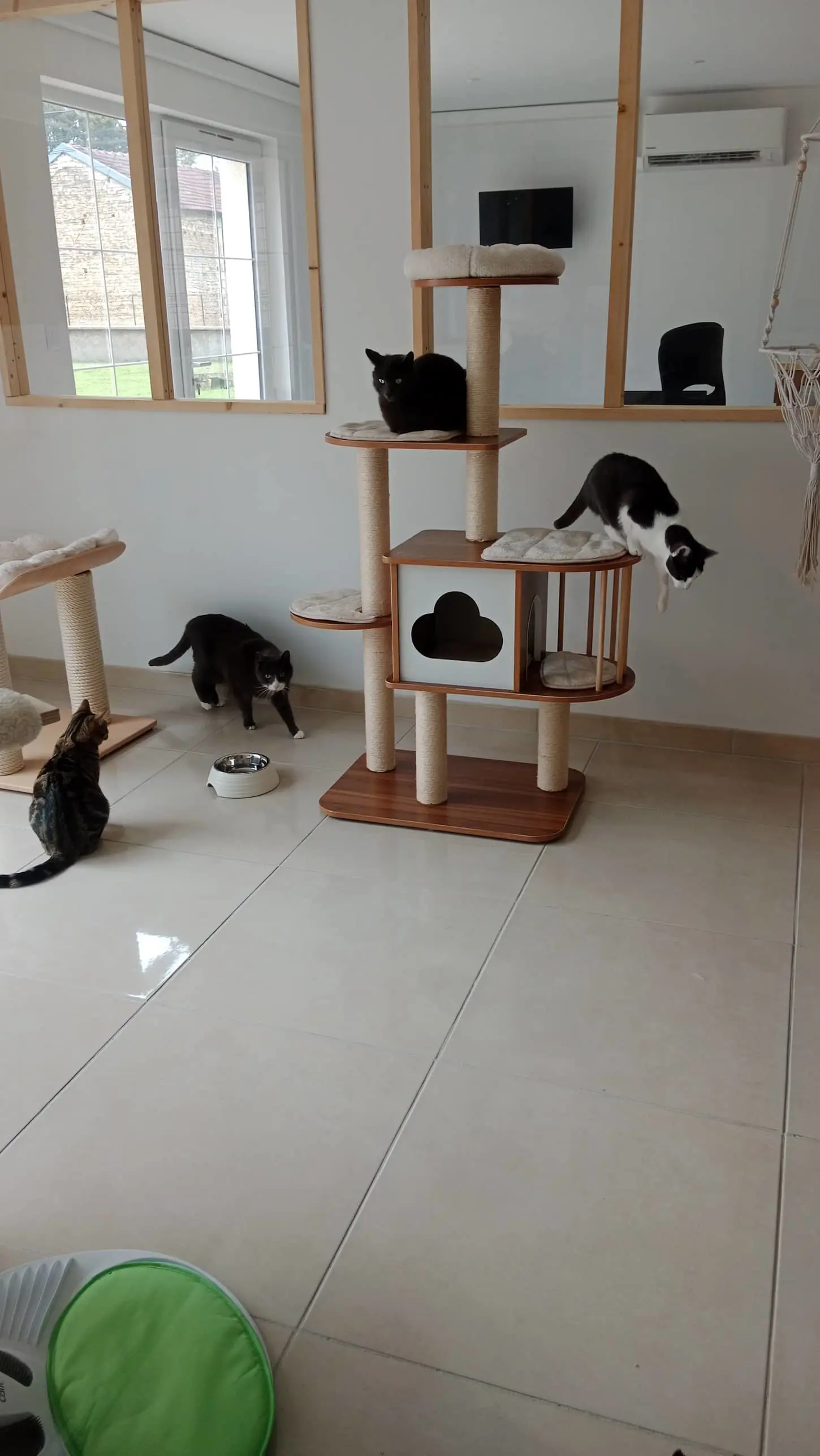 circulation du chat sur les différentes plateformes et l'usage des jouets mis à sa disposition, d'une