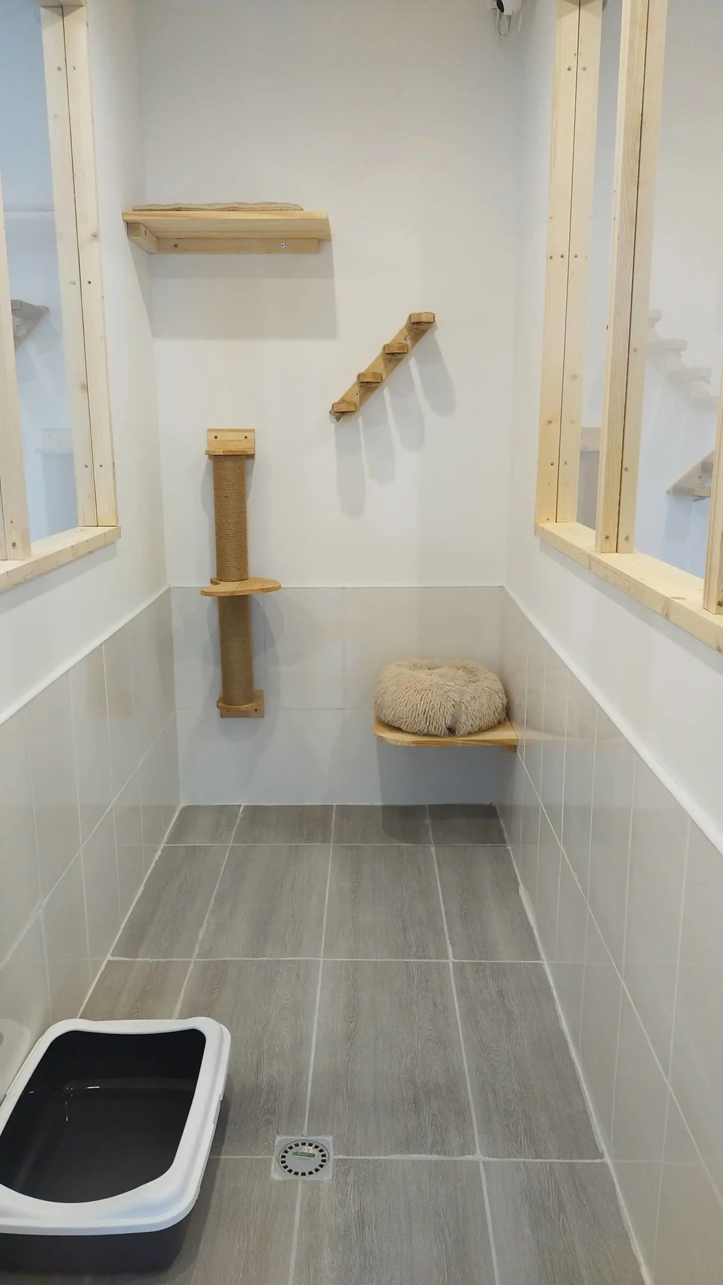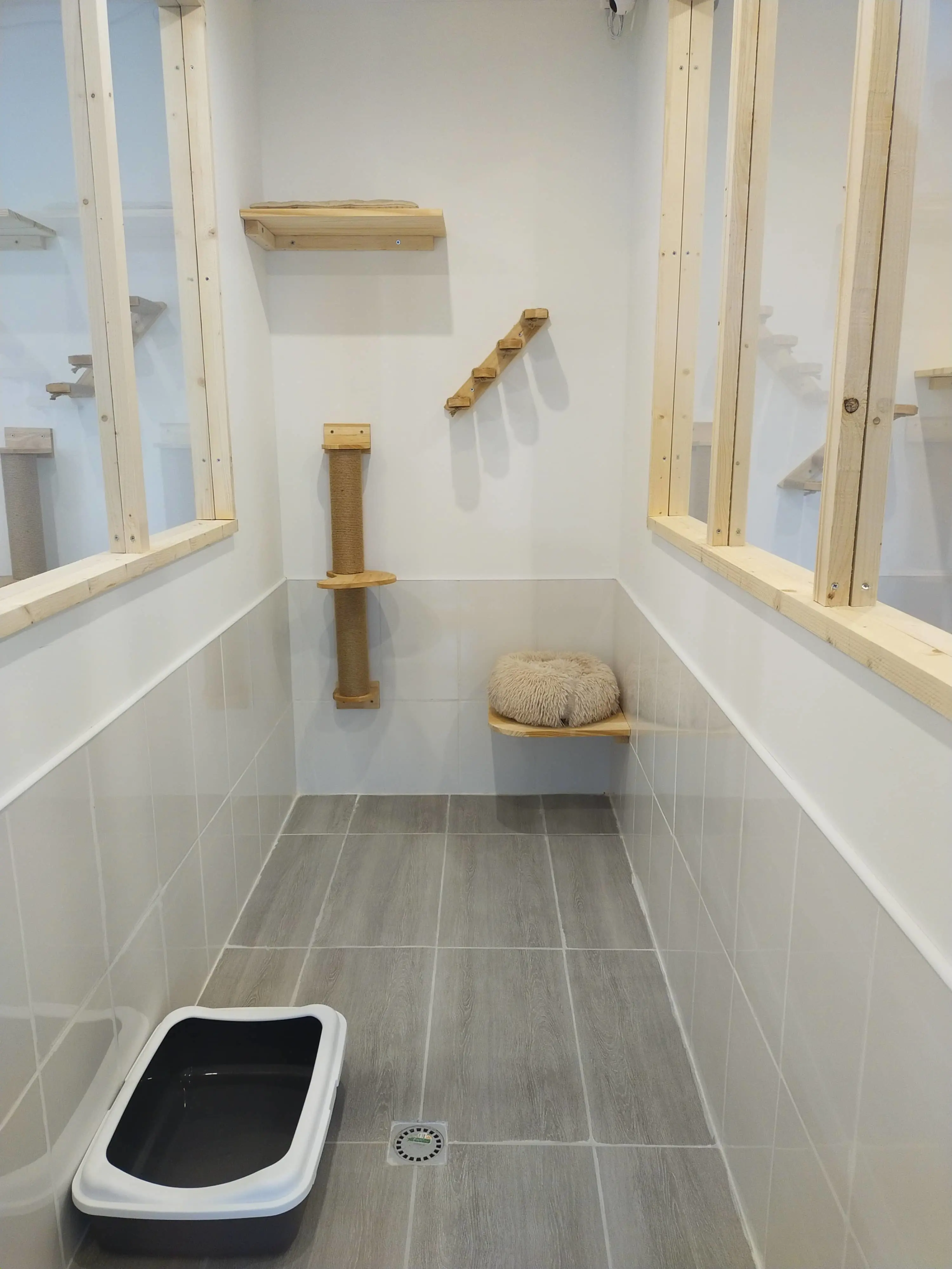 Les bacs à litière individuels des chambres sont entièrement vidés et désinfectés une fois par